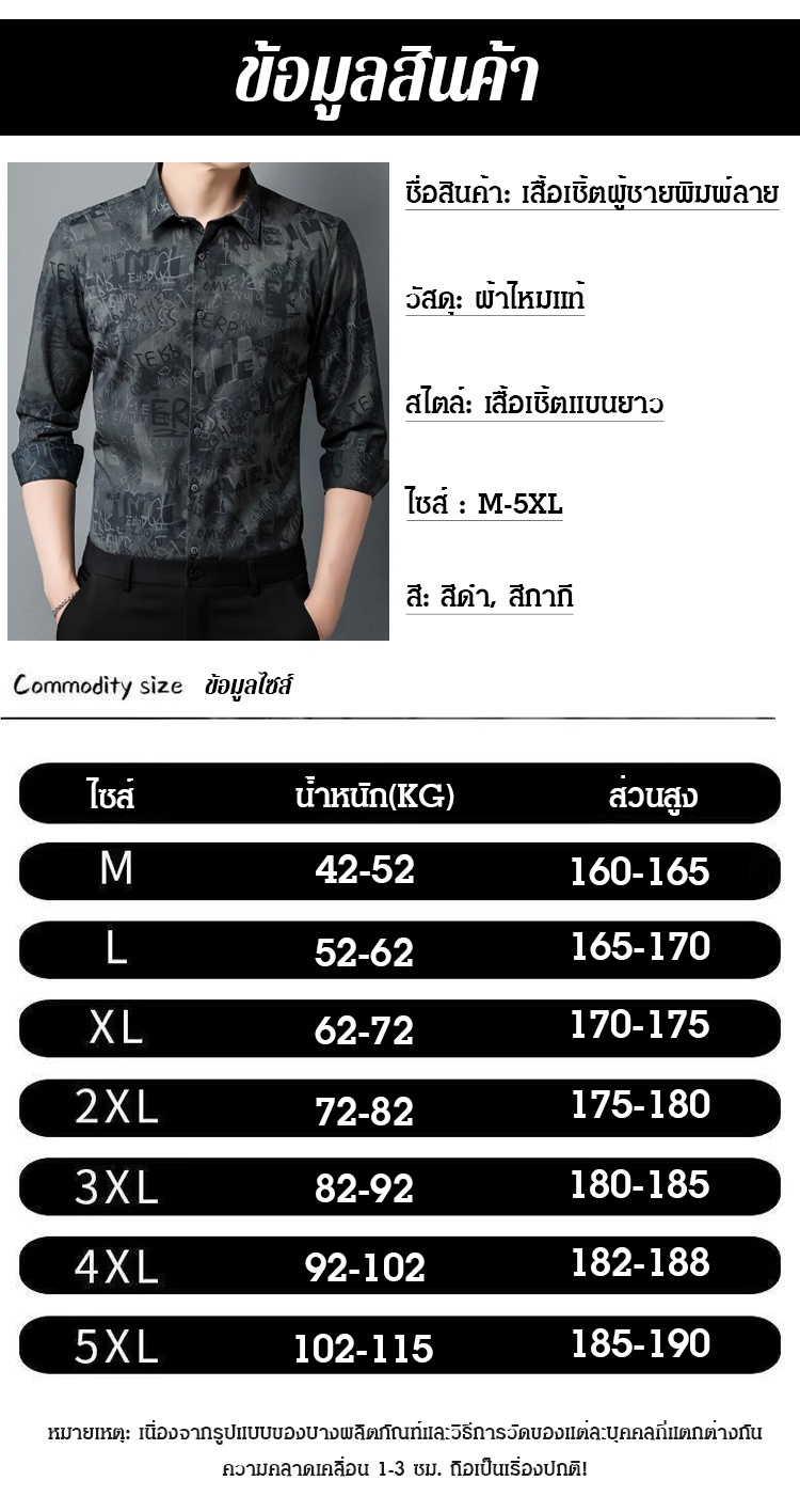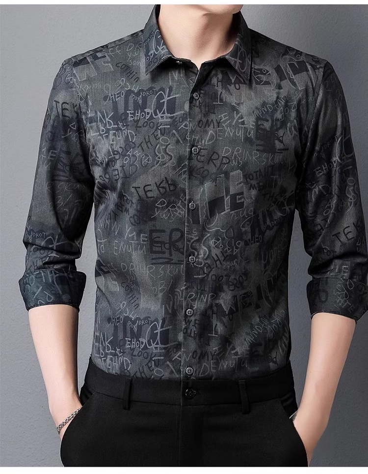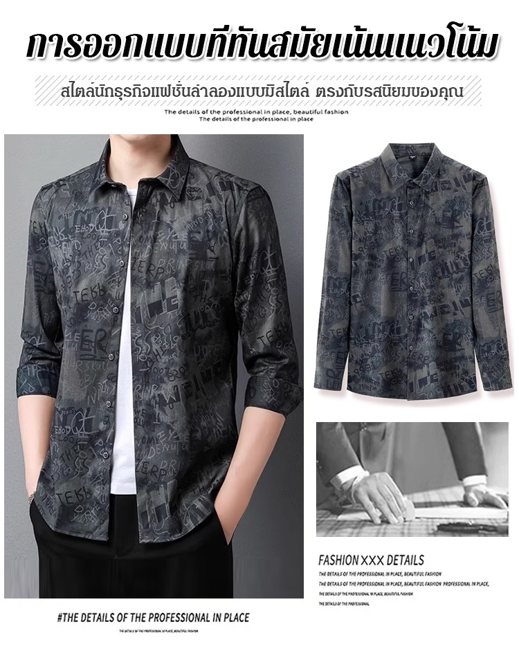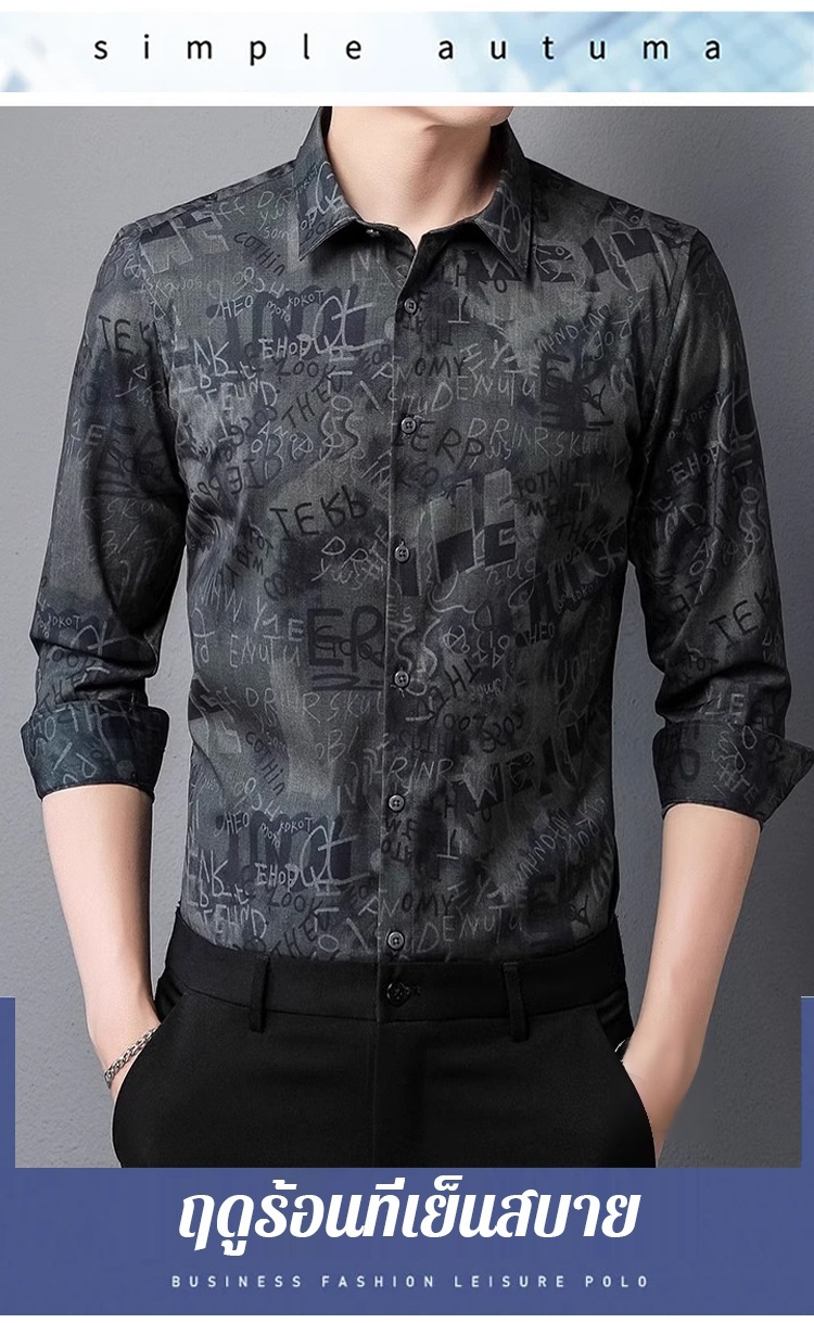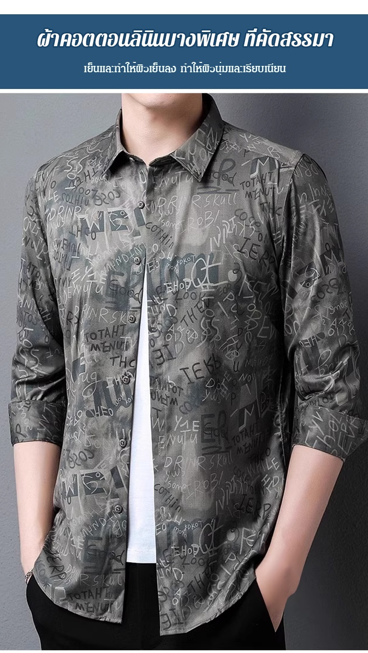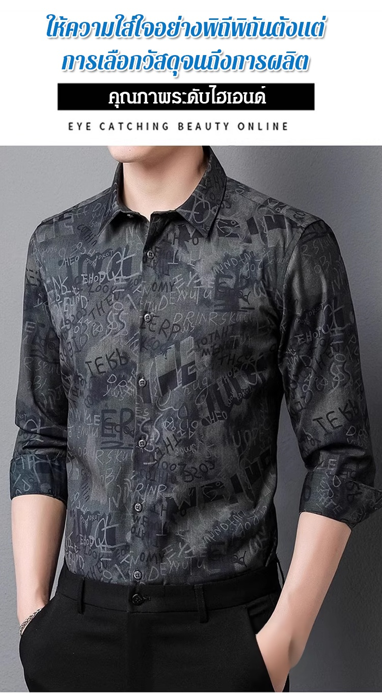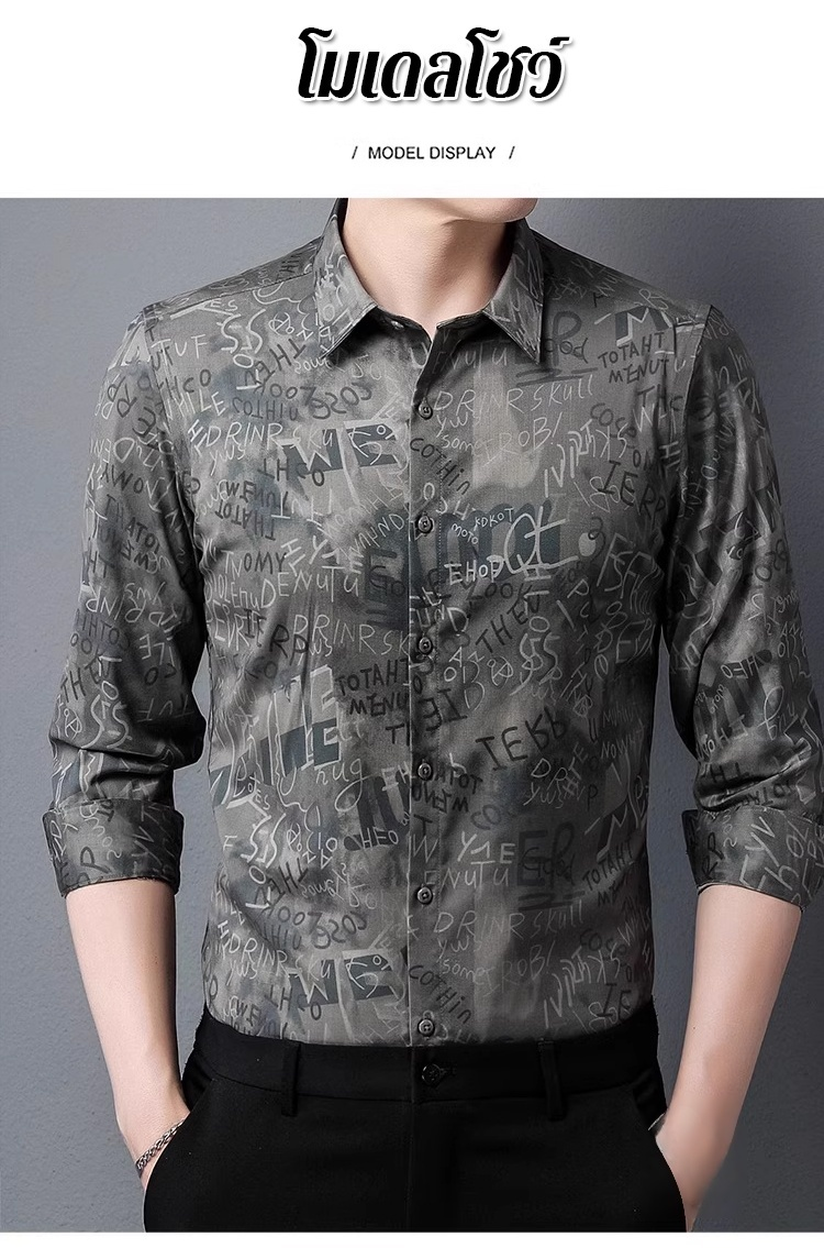 เสื้อเชิ้ตแขนยาวพิมพ์ลายผู้ชาย