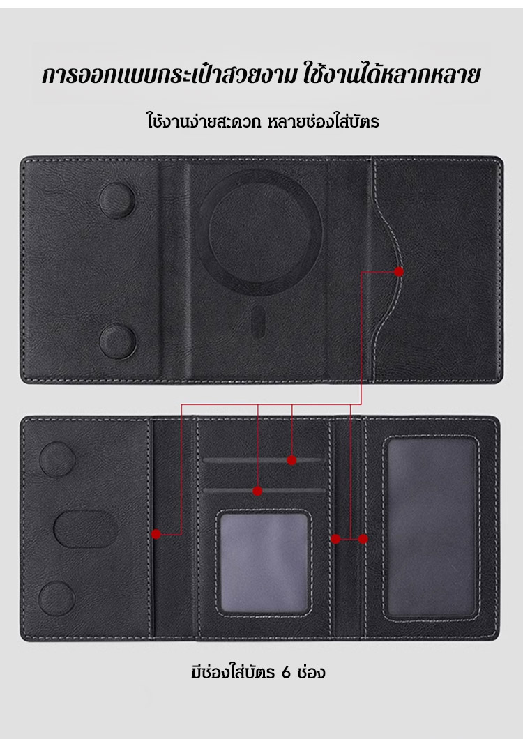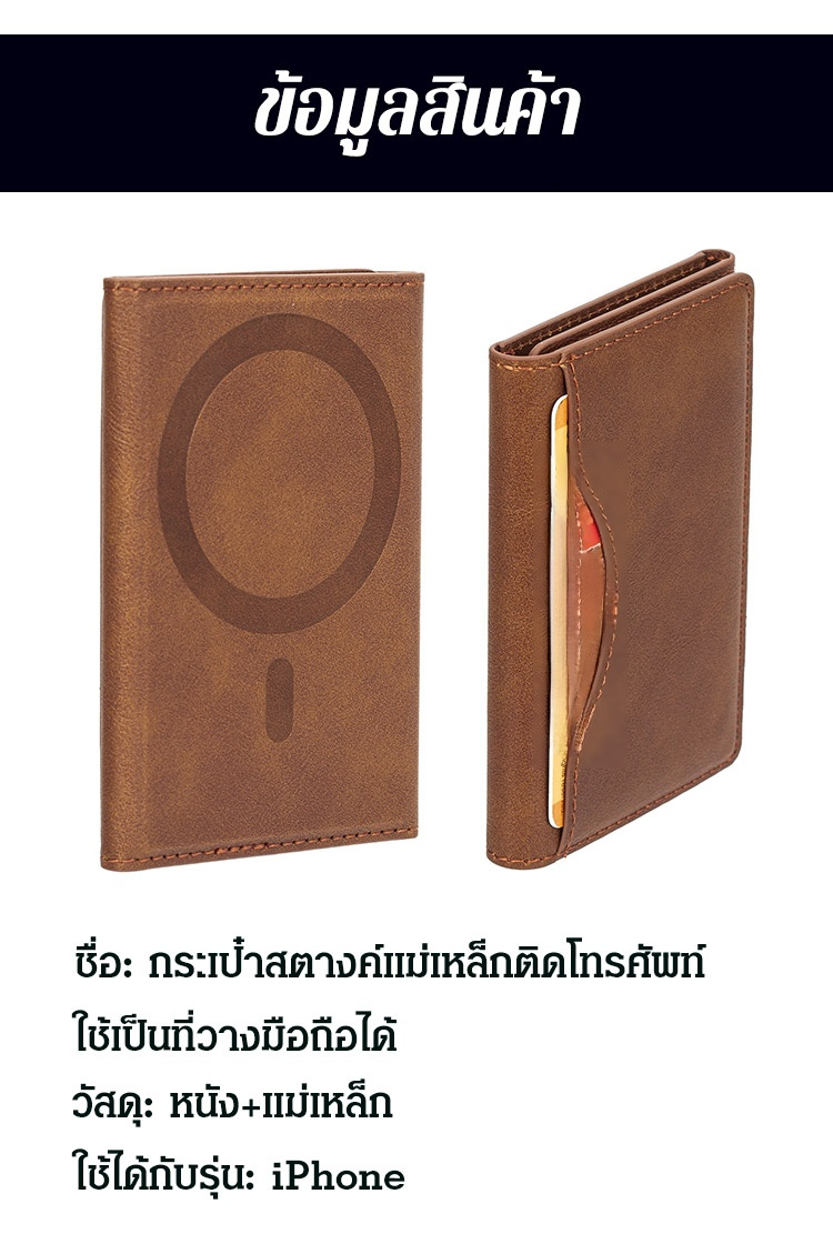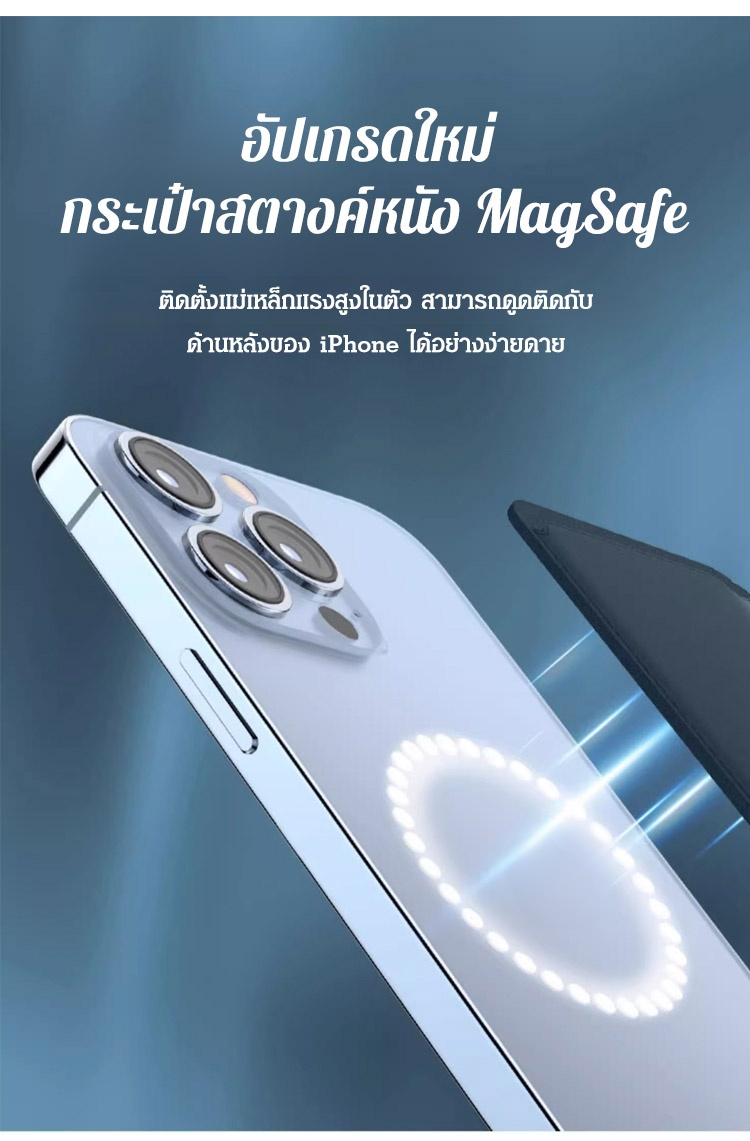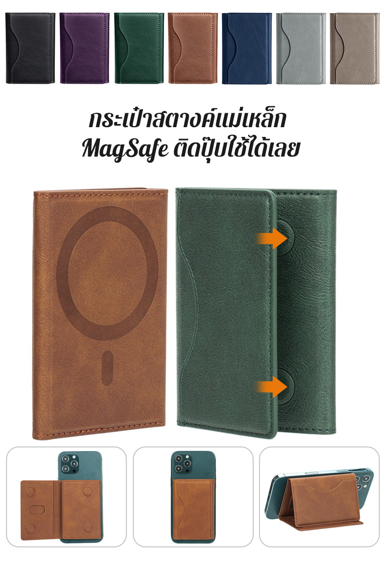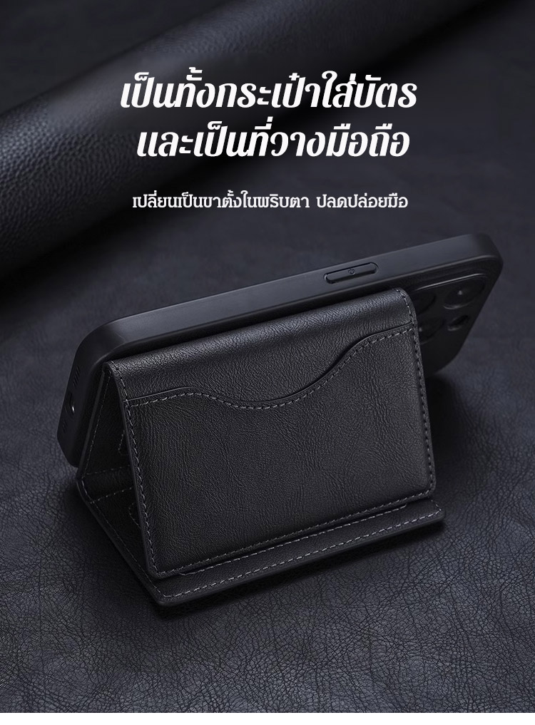 กระเป๋าสตางค์แม่เหล็กติดโทรศัพท์ ใช้เป็นที่วางมือถือได้ พับ 3 ตอน Magsafe