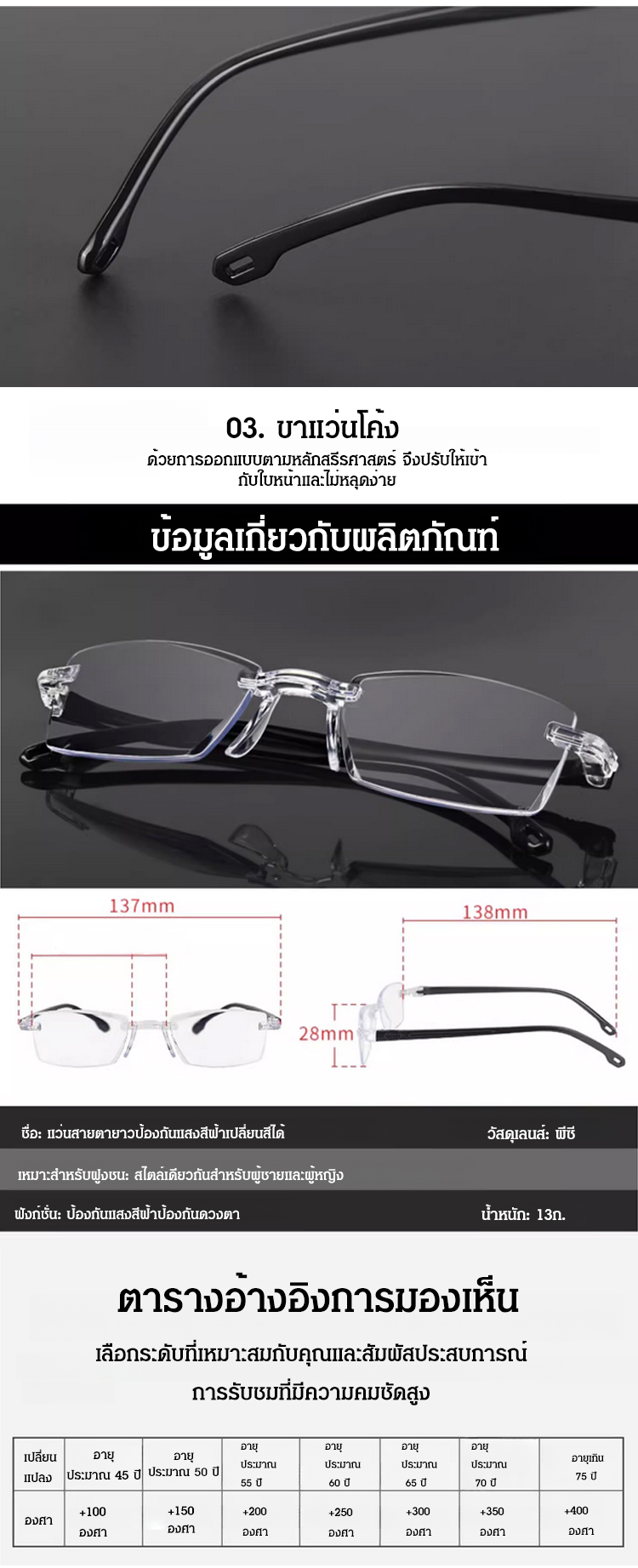 แว่นสายตายาวป้องกันแสงสีฟ้าเปลี่ยนสีได้