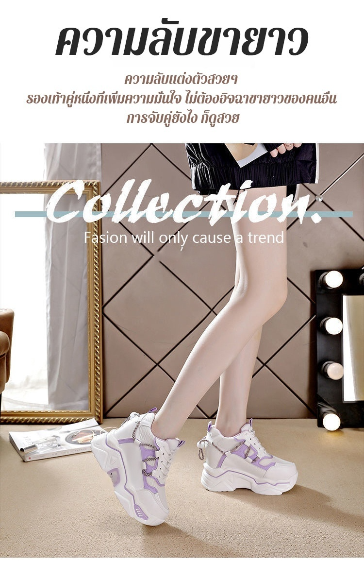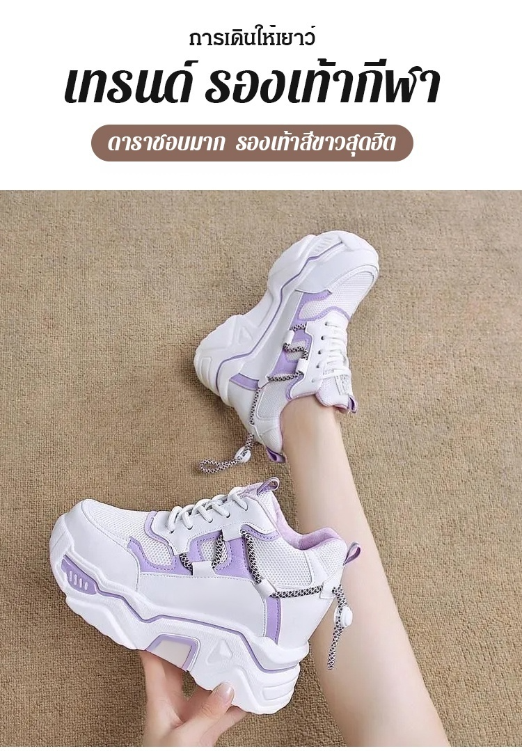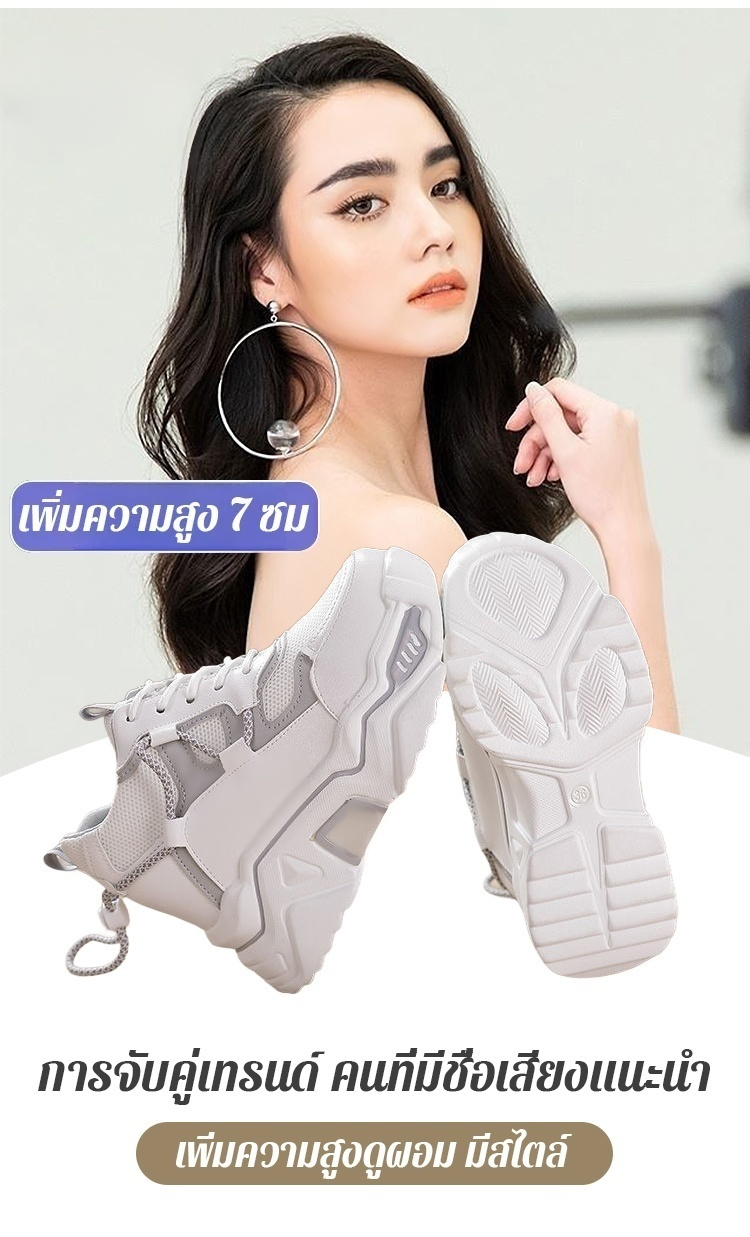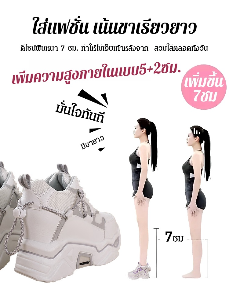 เพิ่มความสูง7ซม. รองเท้าผ้าใบพื้นหนา ดูผอม