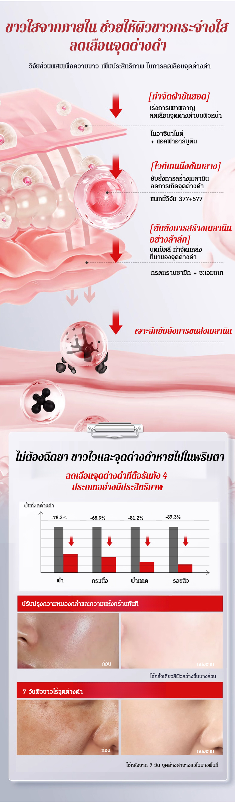 ไวท์เทนนิ่ง ลดเลือนฝ้า ใช้วันละ 2 ครั้ง ภายใน 7 วันผิวหน้าขาวกระจ่างใส!!