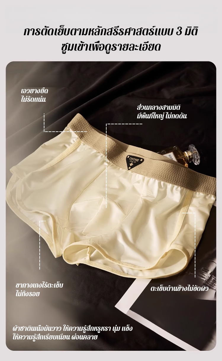 【ป้องกันแบคทีเรียแบบ 10A 】กางเกงในผู้ชายหม่อนไหม ระดับไฮเอนด์