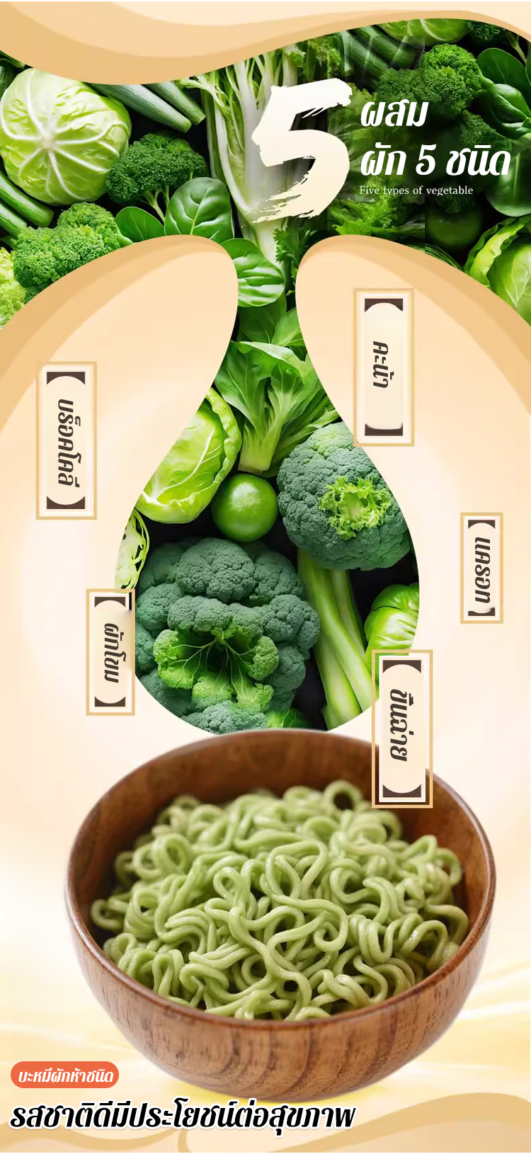 【บำรุงกระเพาะอาหารและม้าม】บะหมี่กึ่งสำเร็จรูปผัก 5 ชนิดเพื่อสุขภาพ