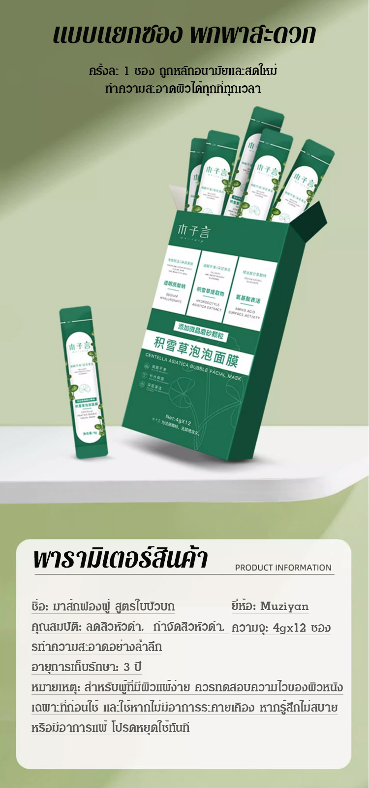 มาส์กฟองฟู่ สูตรใบบัวบก