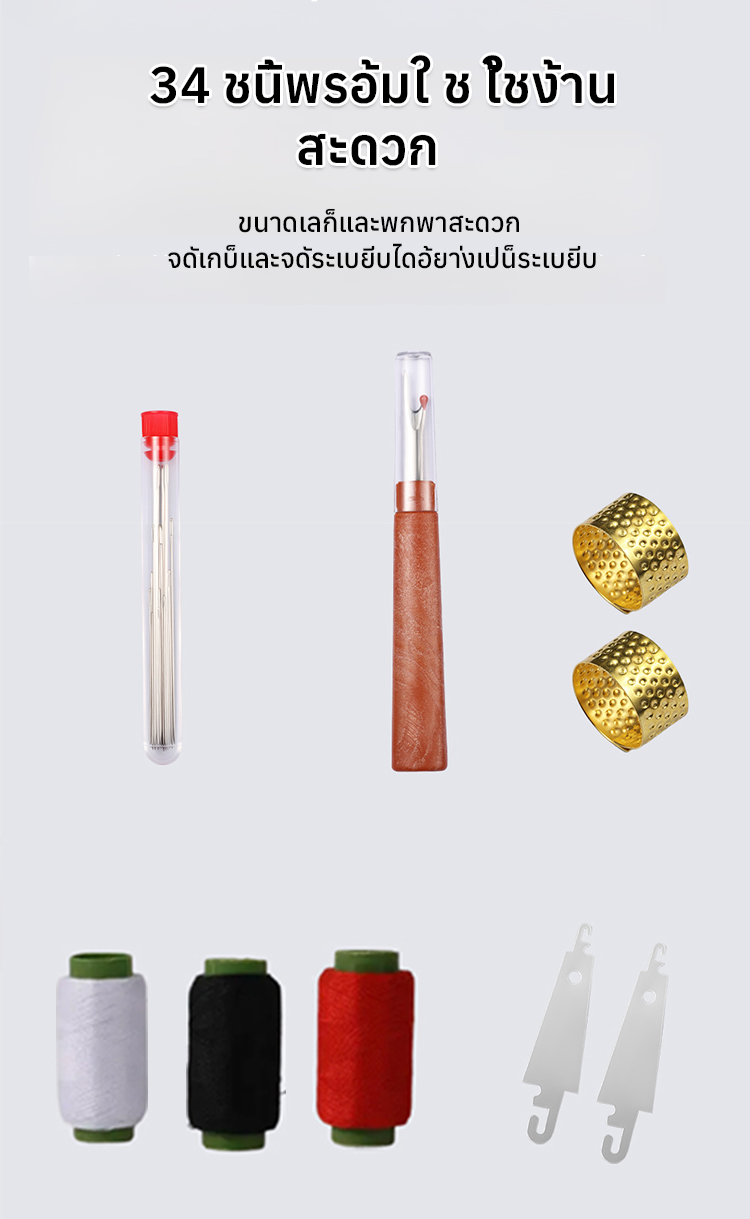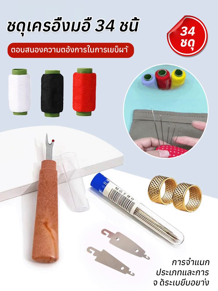 【ชุดคุ้มค่า 34 ชิ้น】ชุดเครื่องมือเย็บผ้าด้วยเข็มตาใหญ่