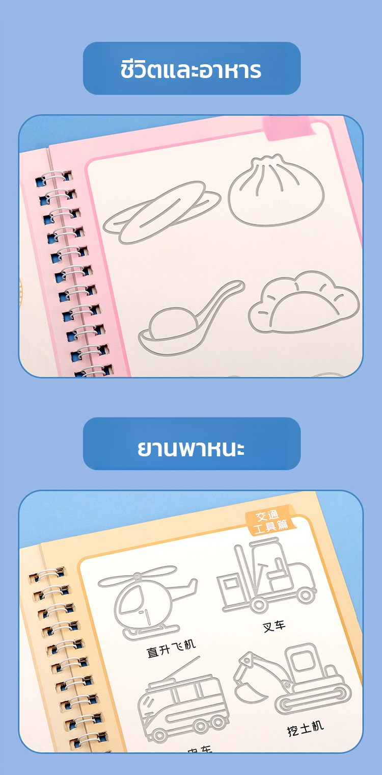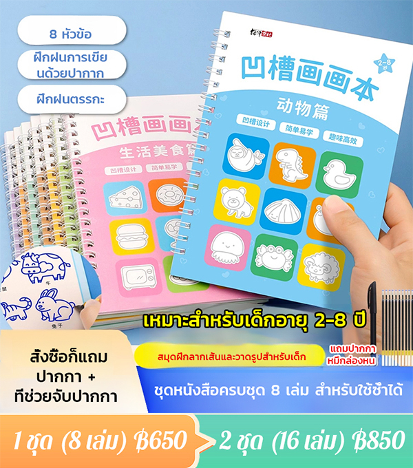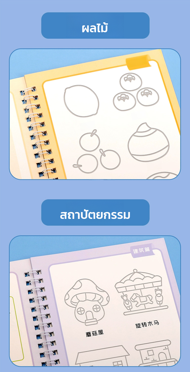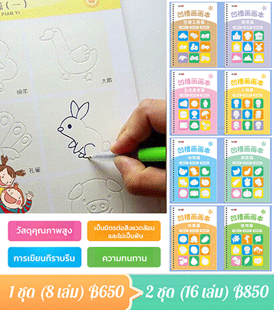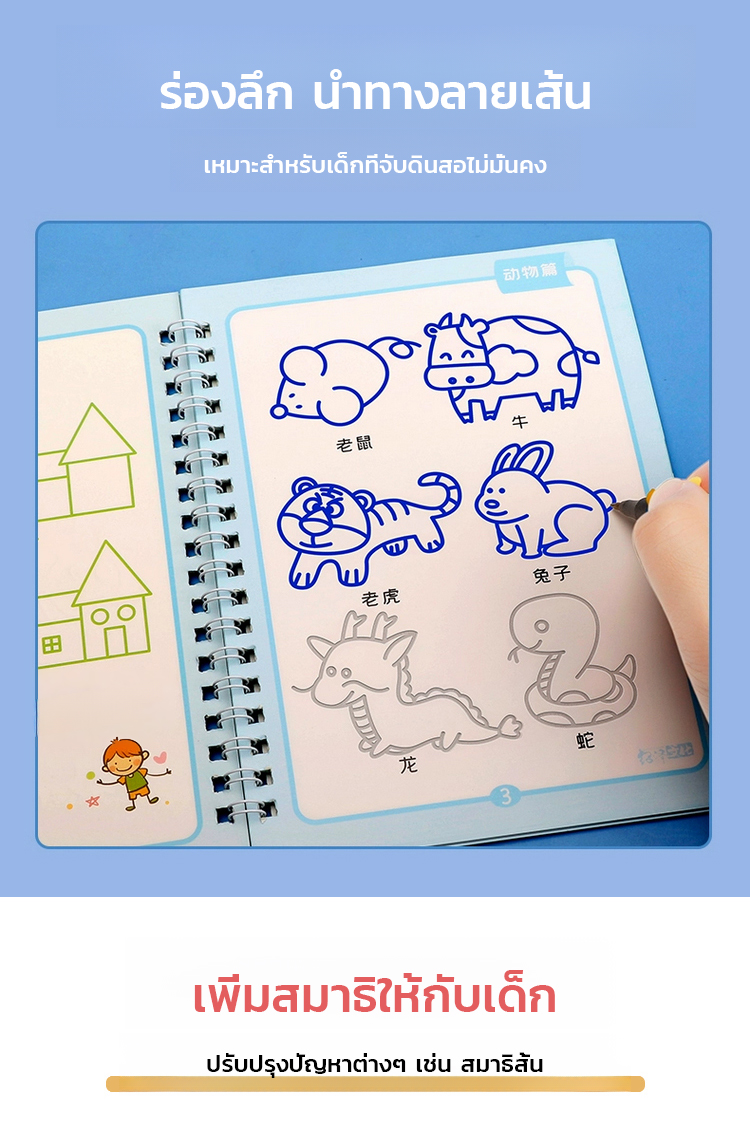 สมุดฝึกลากเส้นและวาดรูปแบบมีร่อง