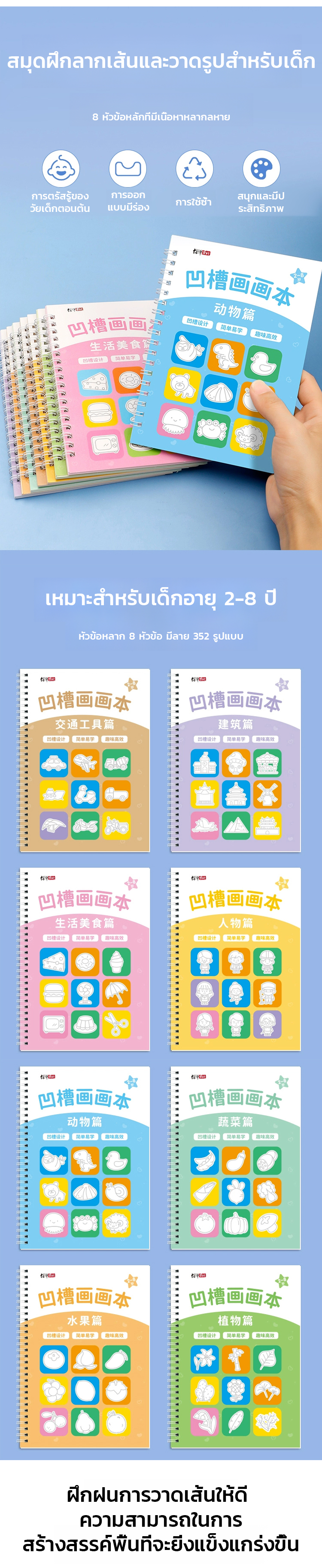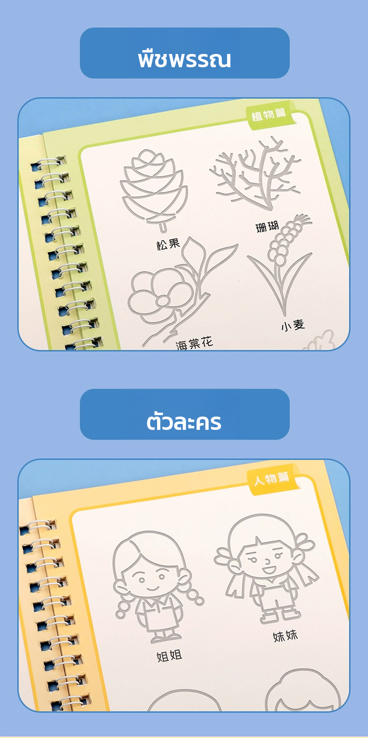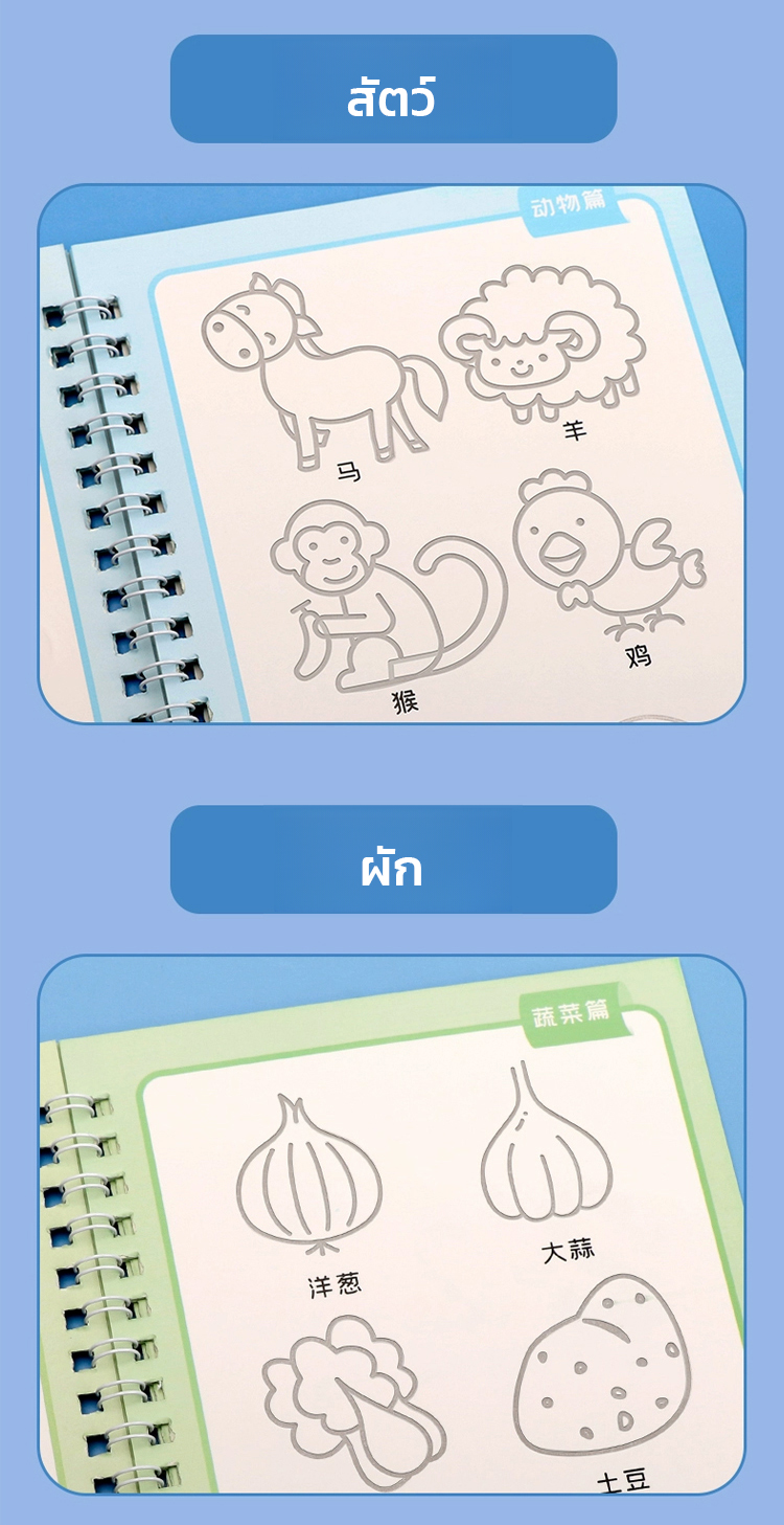 สมุดฝึกลากเส้นและวาดรูปแบบมีร่อง