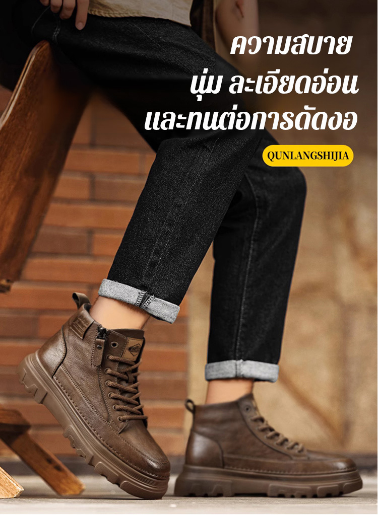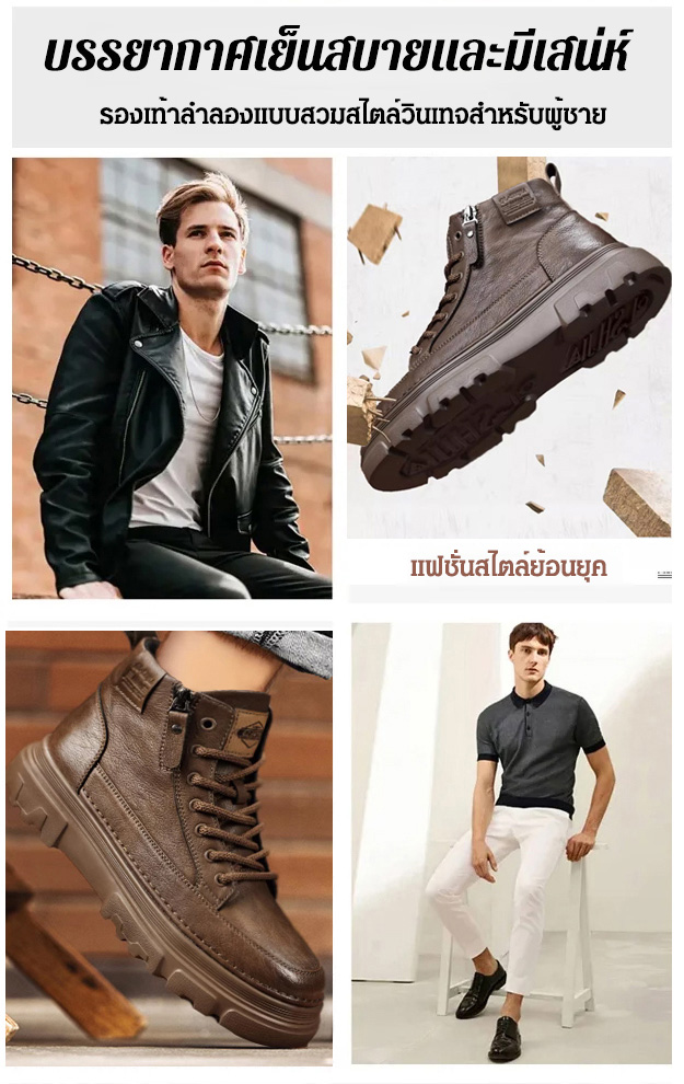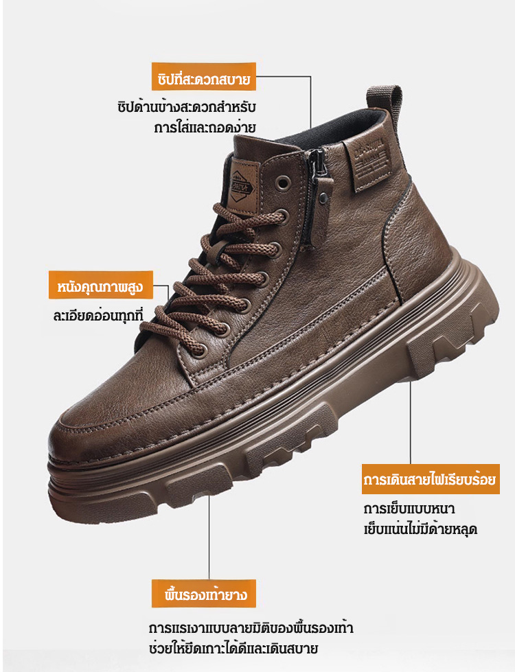 【ไม่ต้องผูกเชือก-มีซิปด้านข้าง】รองเท้าลำลองผู้ชาย
