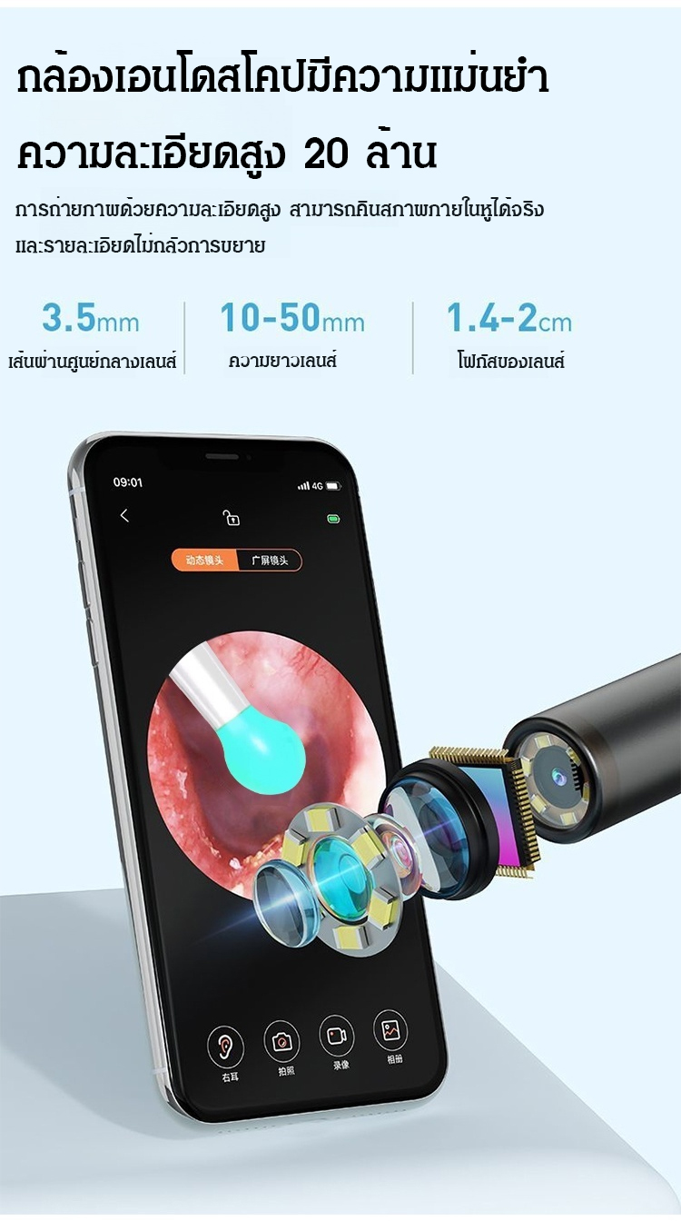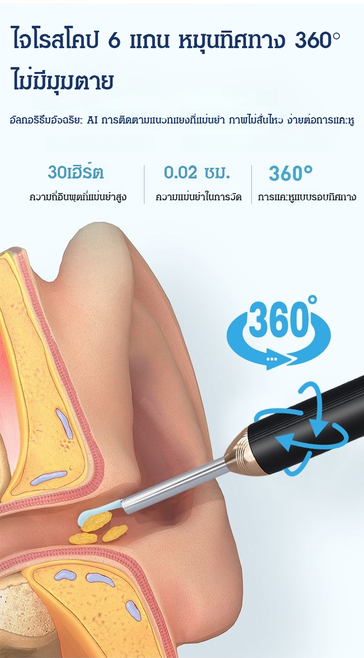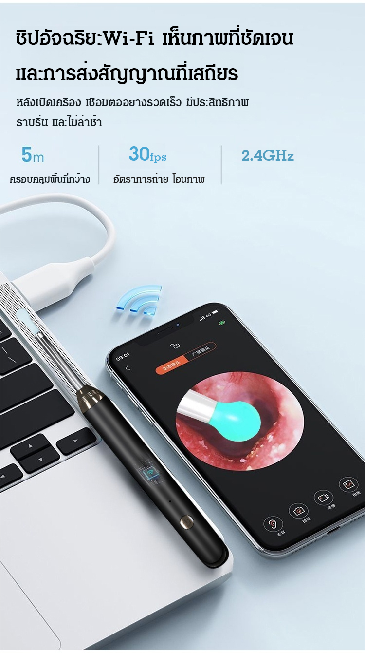 ไม้แคะหูติดกล้อง ความละเอียดสูง เชื่อมต่อ wifi ได้