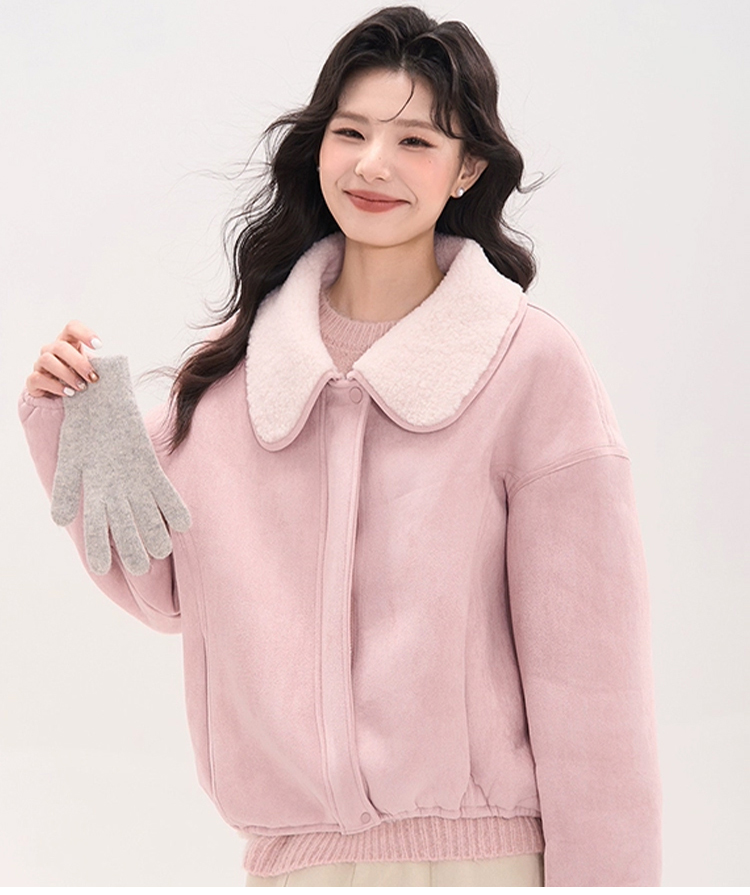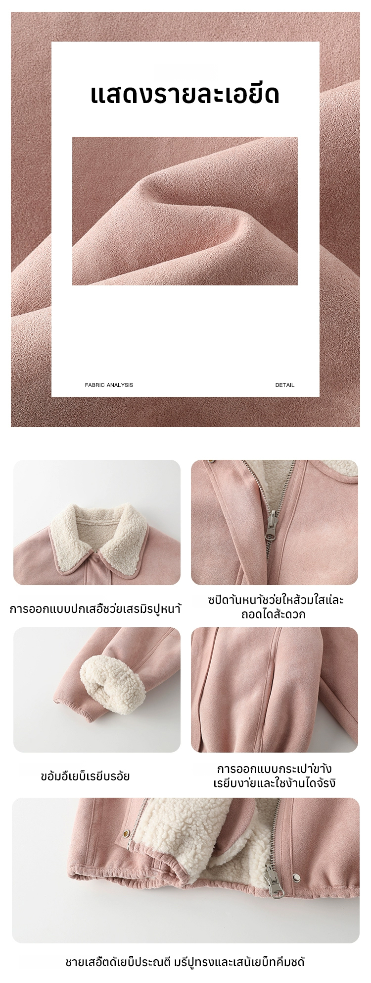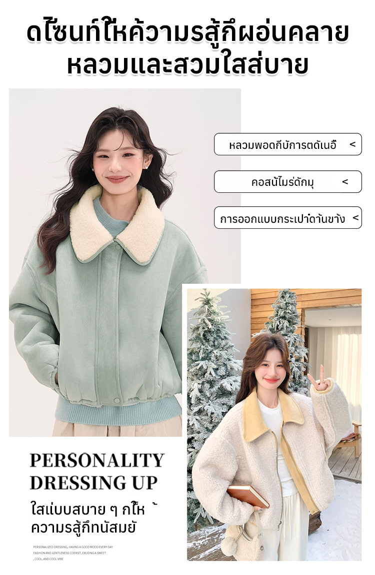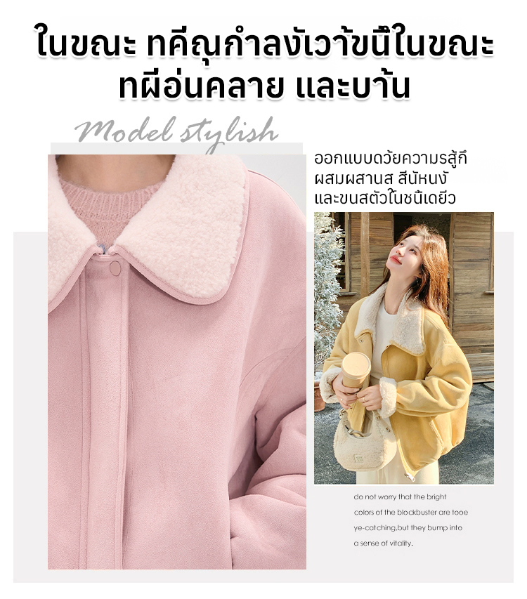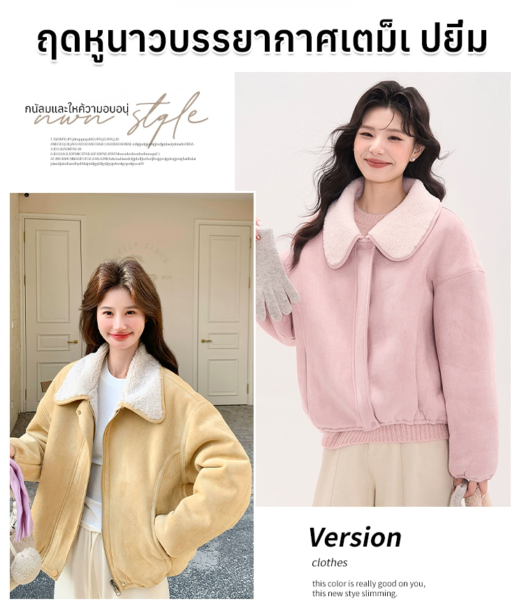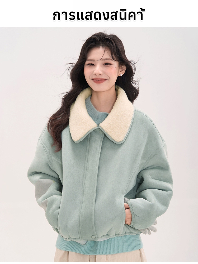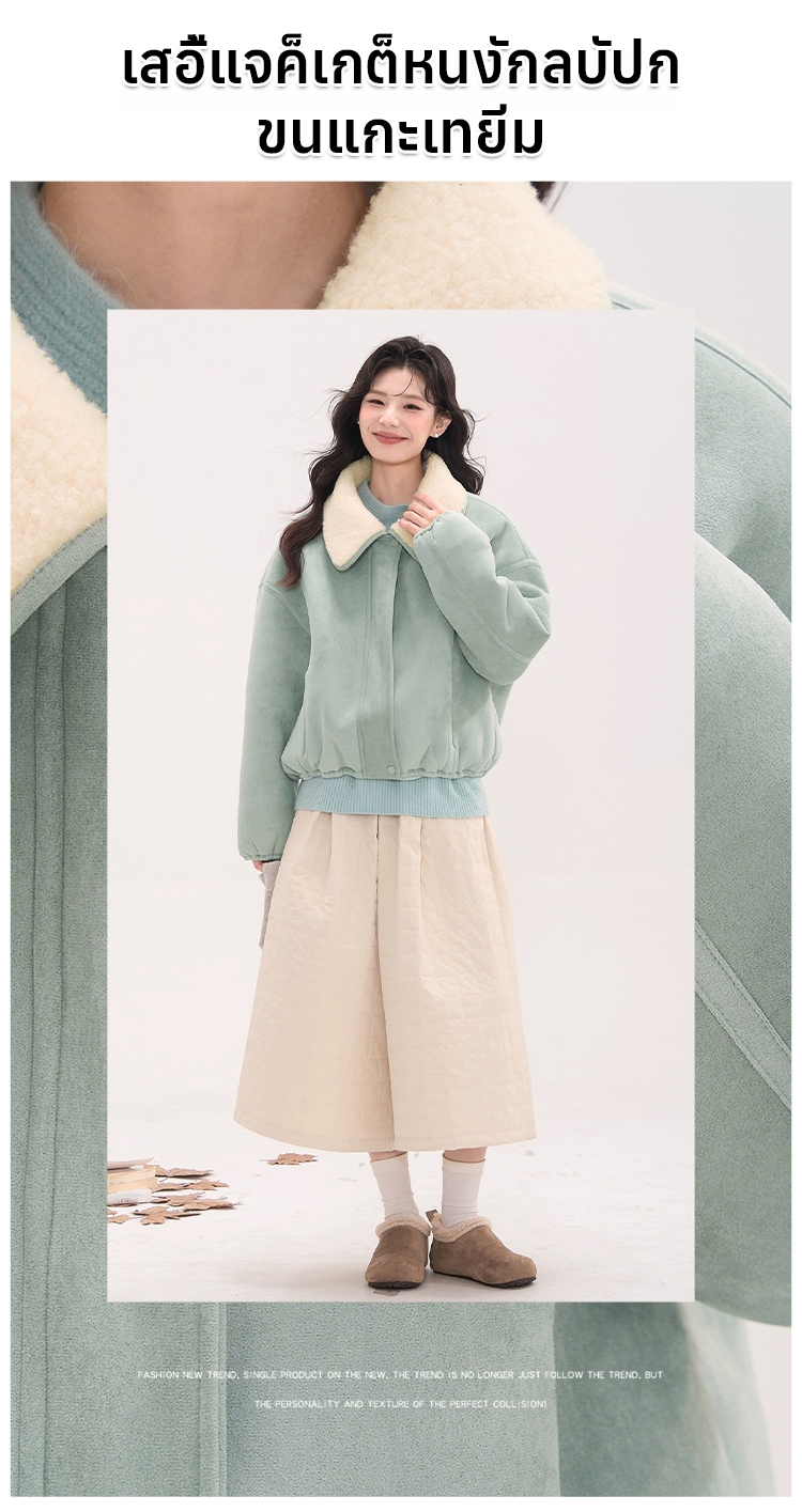 เสื้อแจ็คเก็ตหนังกลับปกขนแกะเทียม