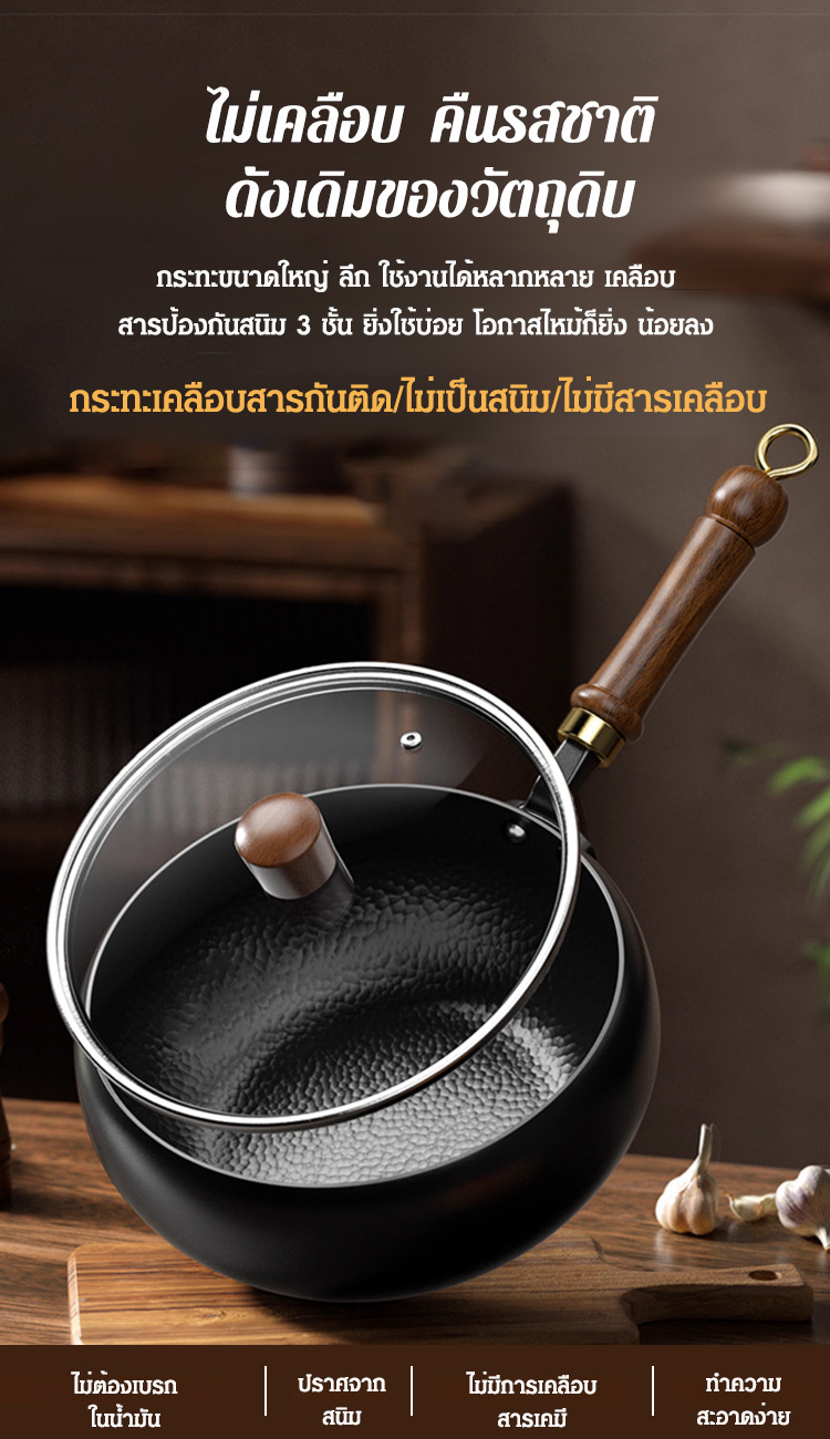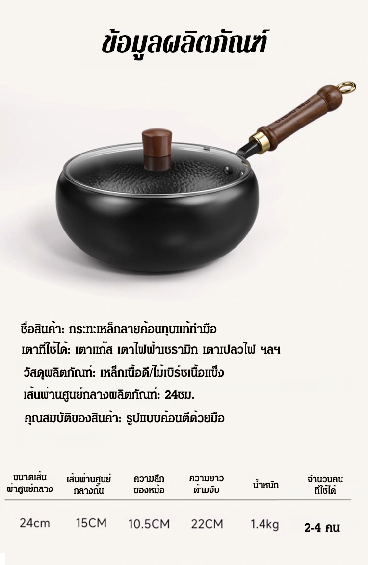 กระทะเหล็กลายค้อนทุบแท้ทำมือ