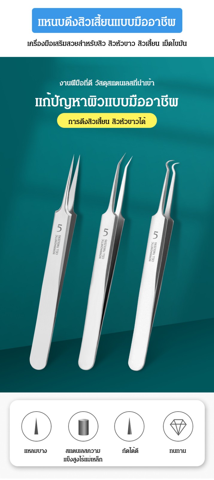 แหนบดึงสิวเสี้ยนสแตนเลส
