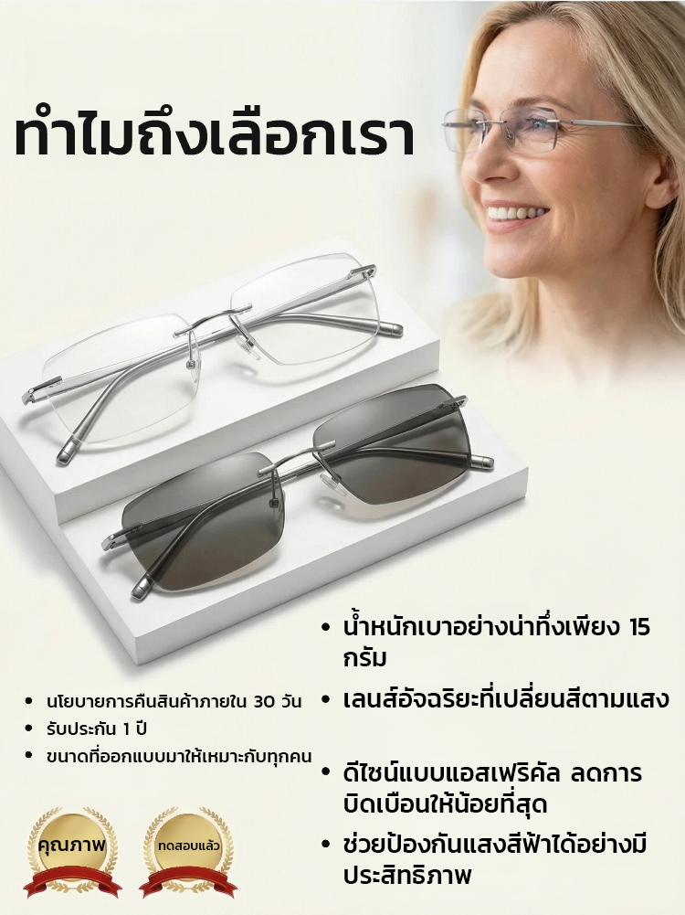 นักออกแบบร่วมสร้างสรรค์】แว่นสายตายาวอัจฉริยะปรับโฟกัสเปลี่ยนสี